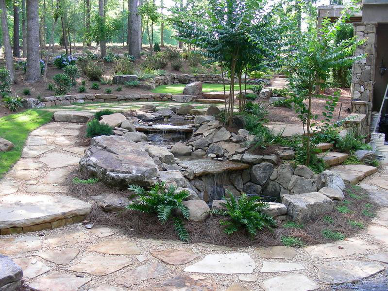 Georgia has many houses that are built on steep grades. The builders usually build decks off the back of the house, but don't do much to create a usable backyard. Our designer is an expert in water management and offers many options to stop erosion and create usable yard space.