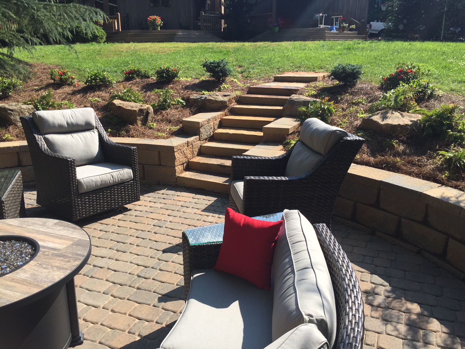 “The stone path and steps they built connect our whole backyard beautifully. The lighting makes it magical at night. Worth every penny.”